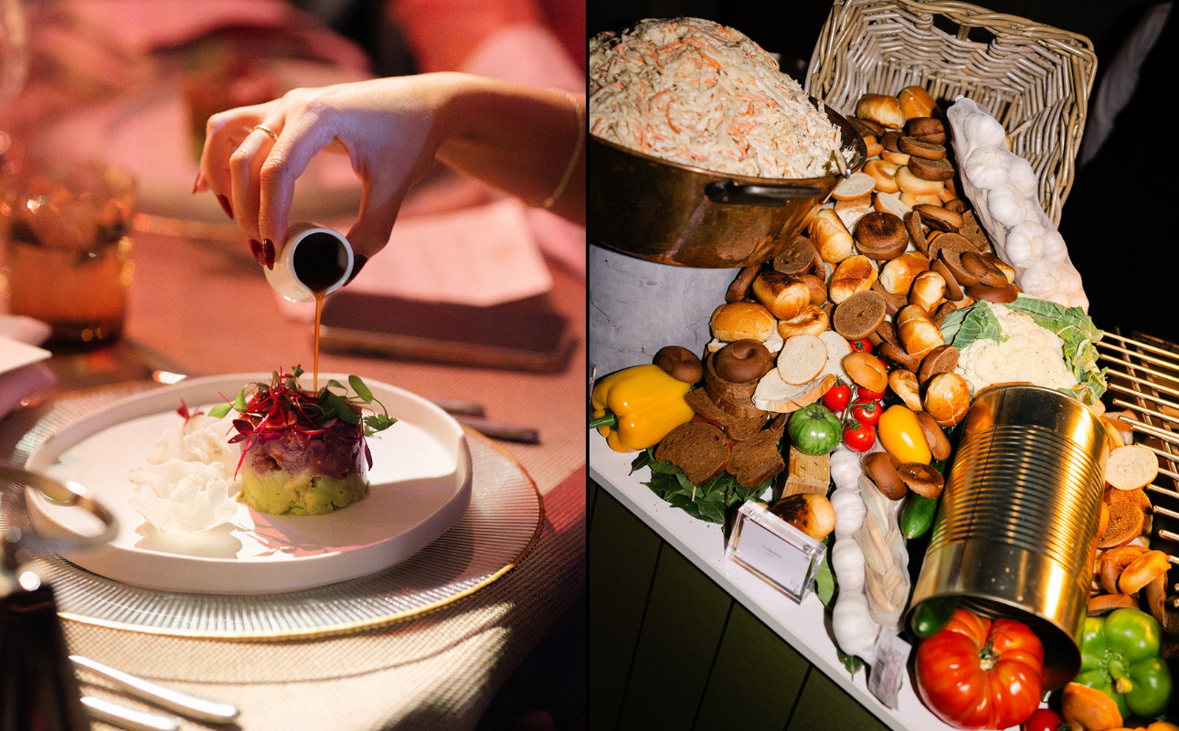 A feast for the eyes, the culinary options provided another opportunity for drama and creativity. A deli board was presented not as a theatrical display: baskets overflowing with artisan bagels, breads, and dips spilling across the table in abundance. This bold approach turned dining into spectacle, a hallmark of what a leading UK wedding planner can bring to the table.